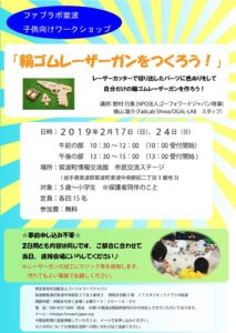 内容はファブテラスいわてでも大好評だった輪ゴムレーザーガンの制作。